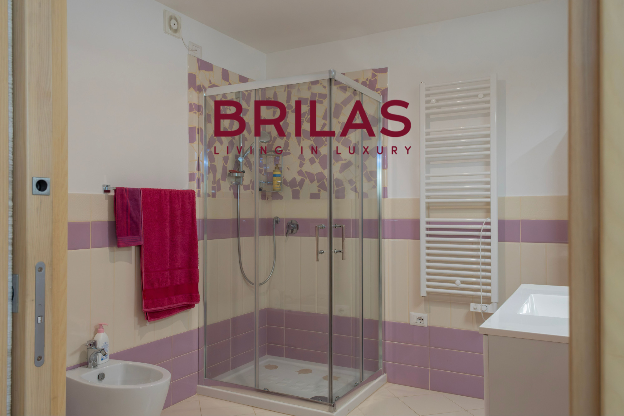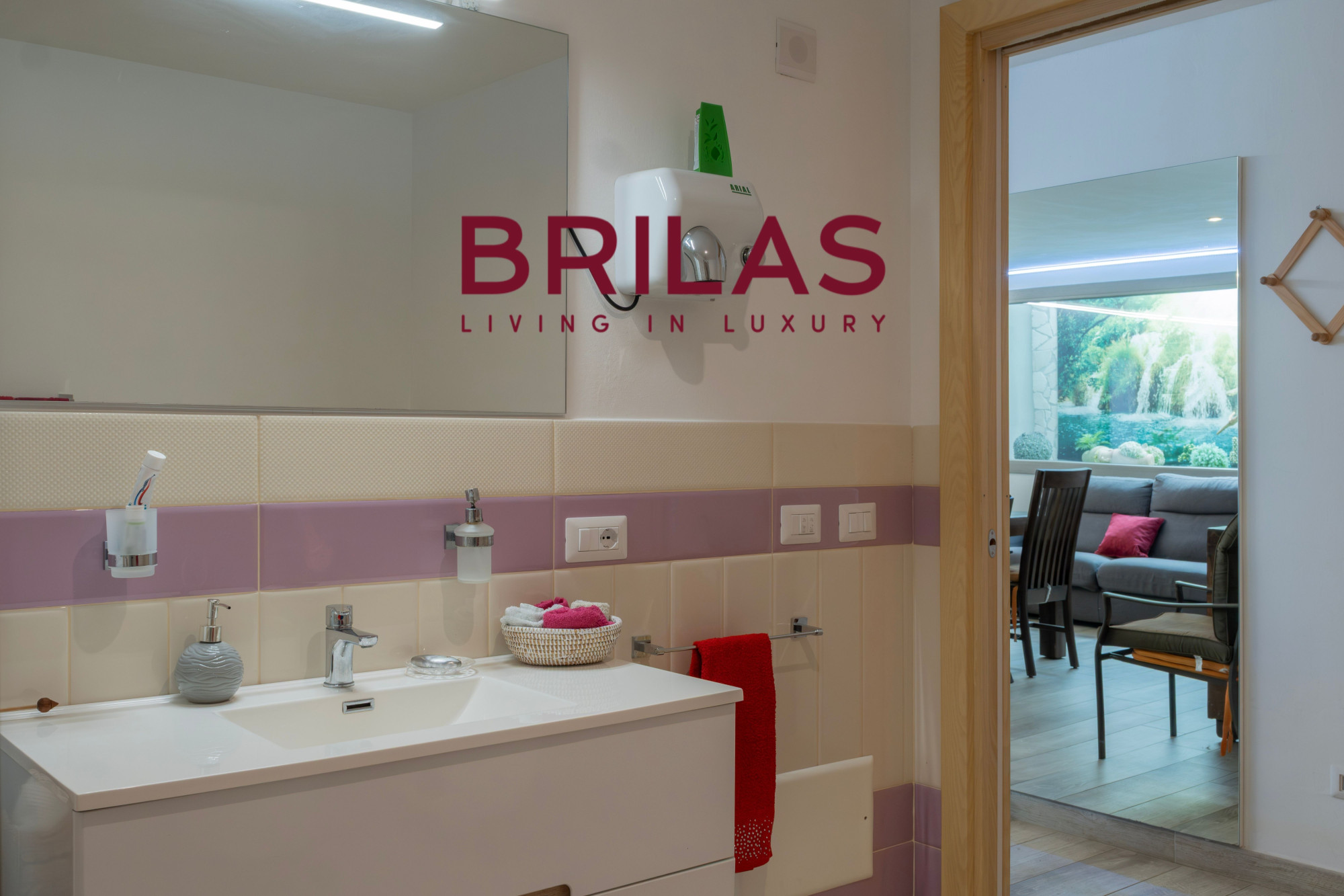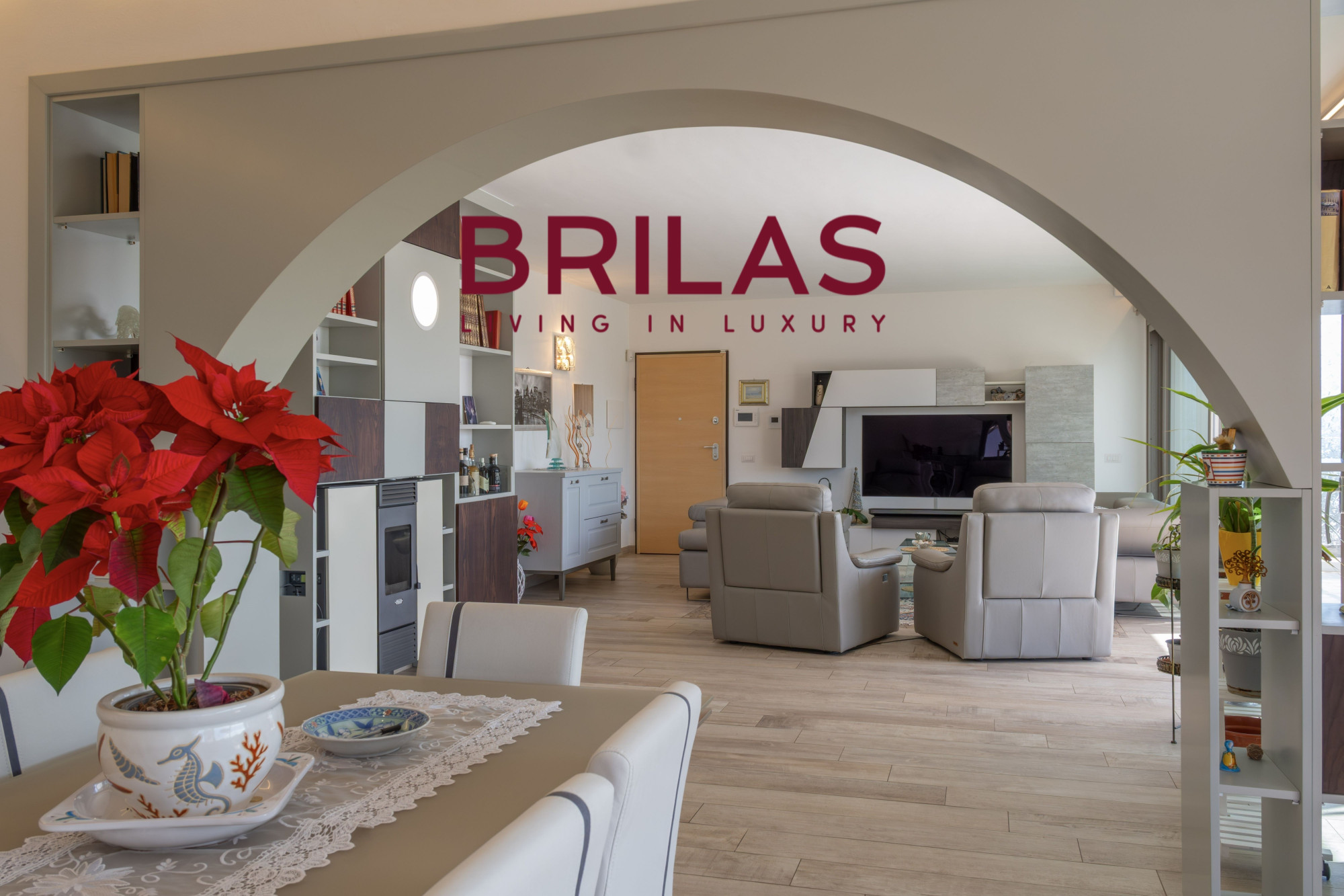 The eat-in kitchen integrates elegantly into the space, combining functionality and style, while the sleeping area—comprising two bedrooms and two bathrooms—ensures a private and welcoming atmosphere, designed to offer the utmost comfort and serenity.