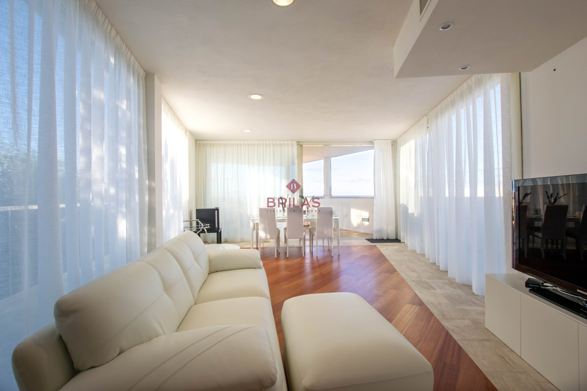 On the first floor a large and bright living room, kitchen, three bedrooms, three bathrooms, large covered terrace on the floor. Solarium above the apartment and a laundry room on the ground floor.