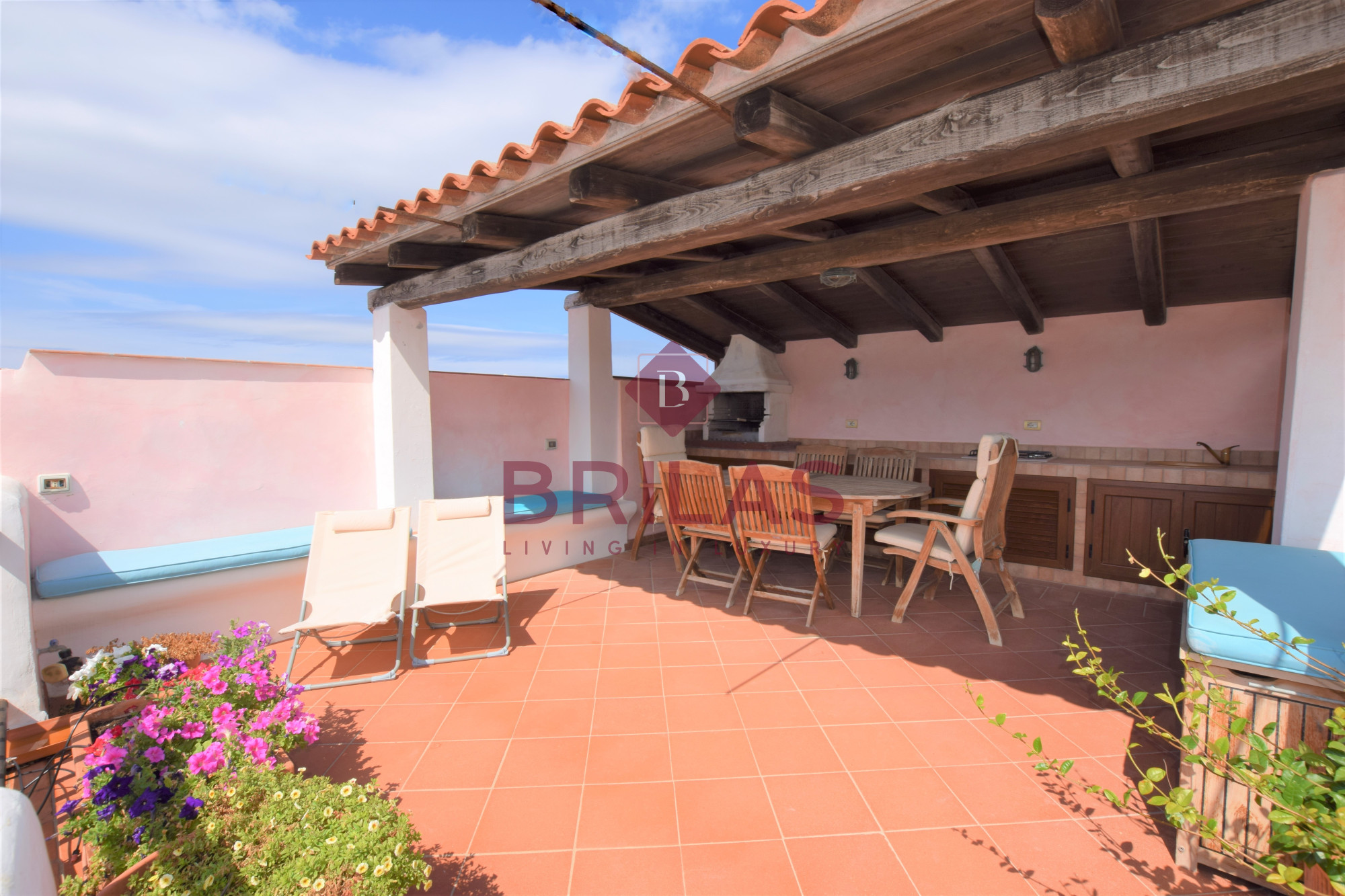 Internally the real estate unit consists of three bedrooms and three bathrooms, a large room with a separate corner kitchen and verandas with panoramic views of the beach and the sea. On the second floor, we have a solarium with wonderful open view on the Maddalena Archipelago.