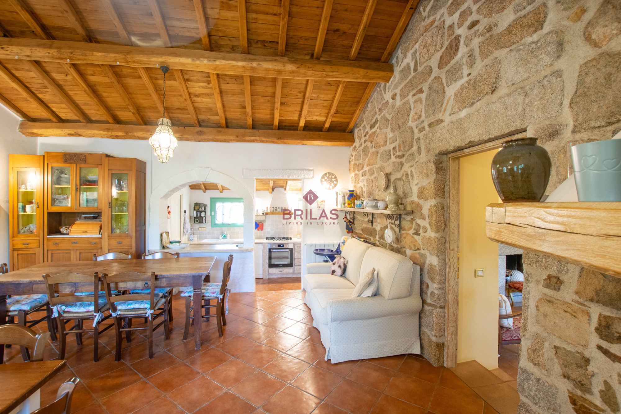 Surrounded by three hectares of land, the residence has been carefully restored, enhancing the typical elements of Gallura architecture: wooden beam ceilings, natural stone floors, and meticulous attention to detail. The atmosphere is warm, authentic, and refined—perfect for those seeking a peaceful retreat immersed in greenery, away from noise and chaos yet close to essential services.