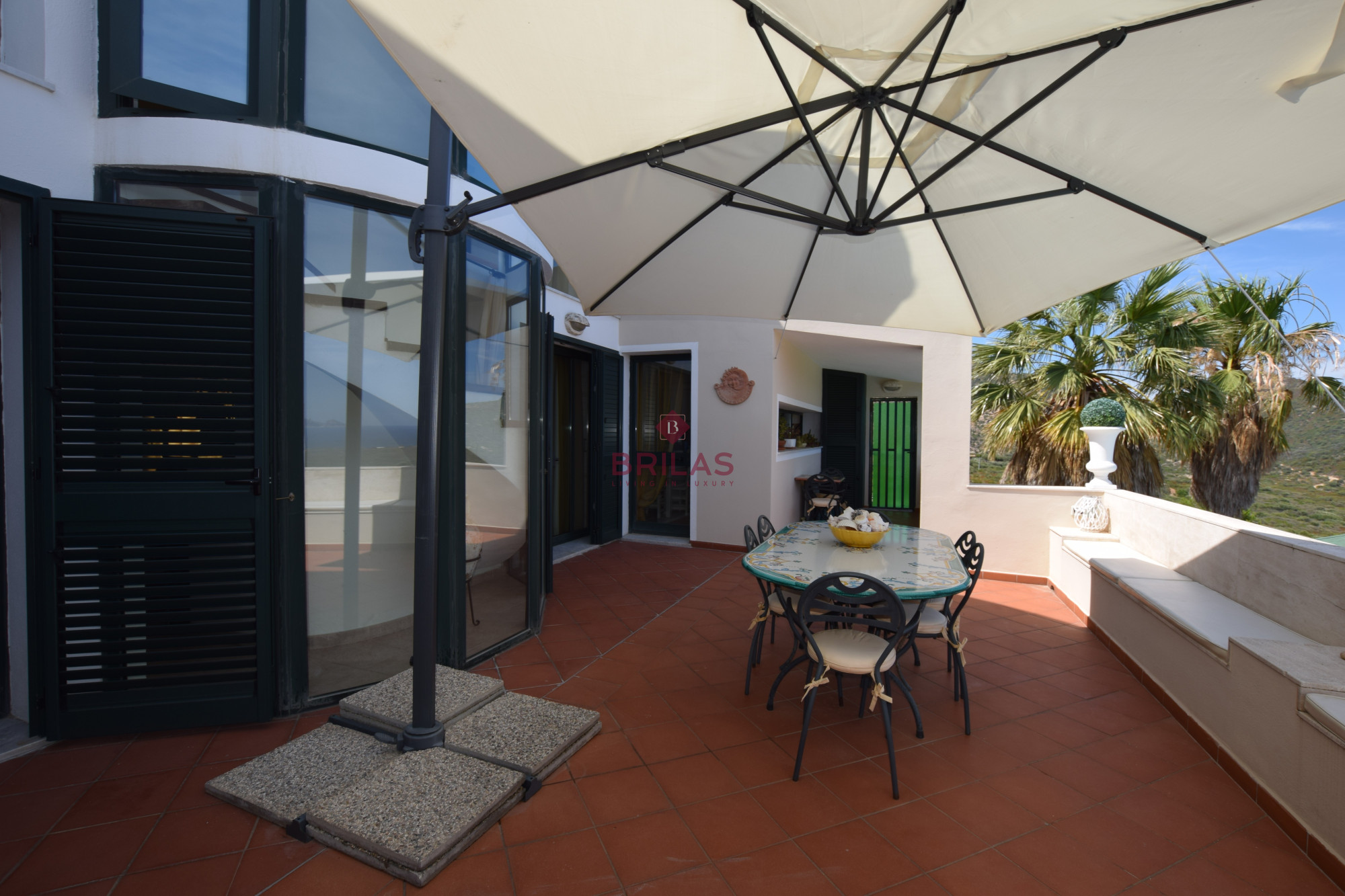 The beautiful Mediterranean scrub, characterised by olive trees and rocks, surrounds the property.