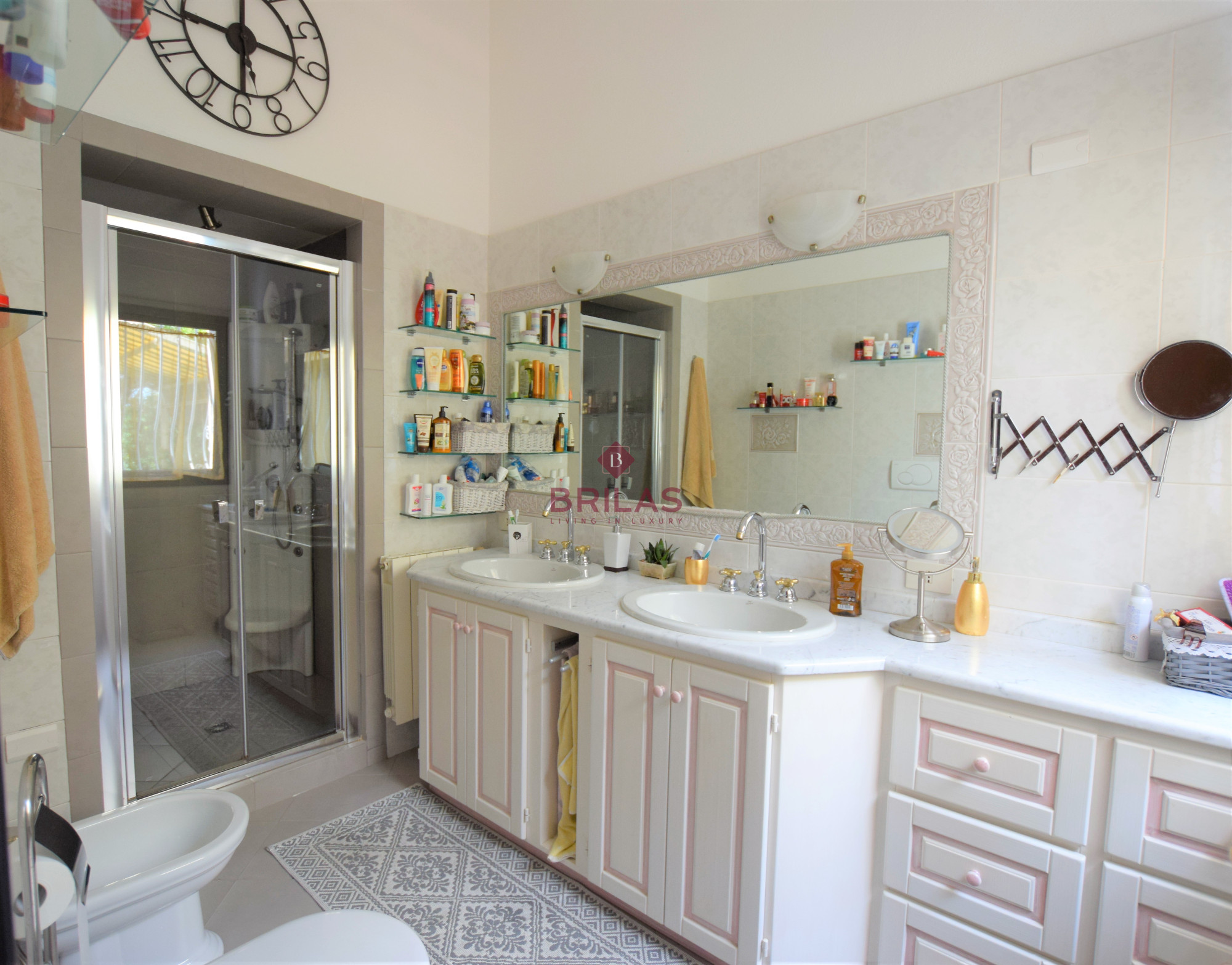 The basement is organised to be an independent annexe. There is a living room with an open kitchen, two bedrooms, a bathroom and a warehouse. There is also a large covered veranda facing the pool.