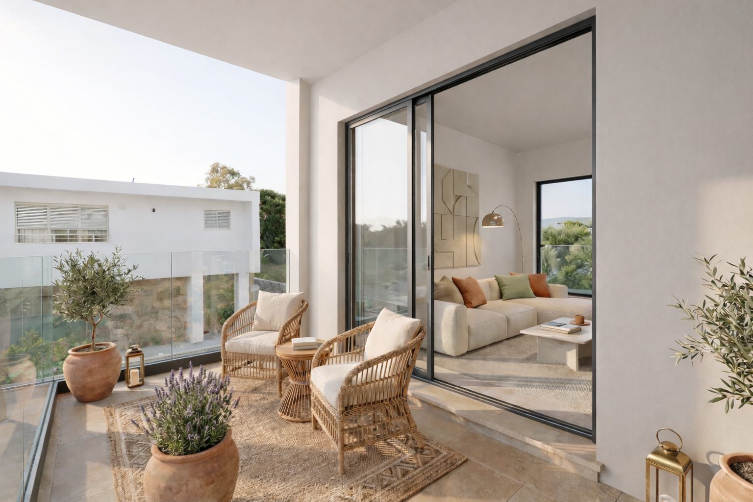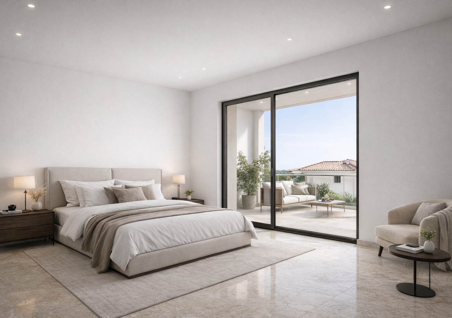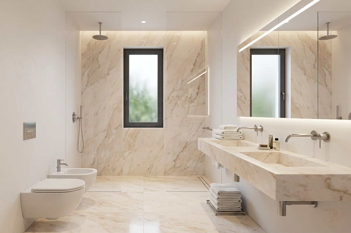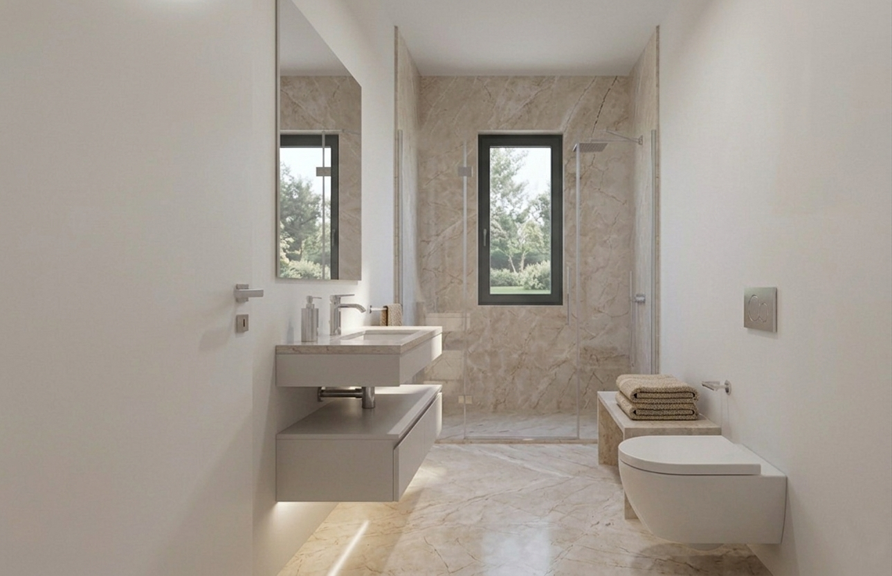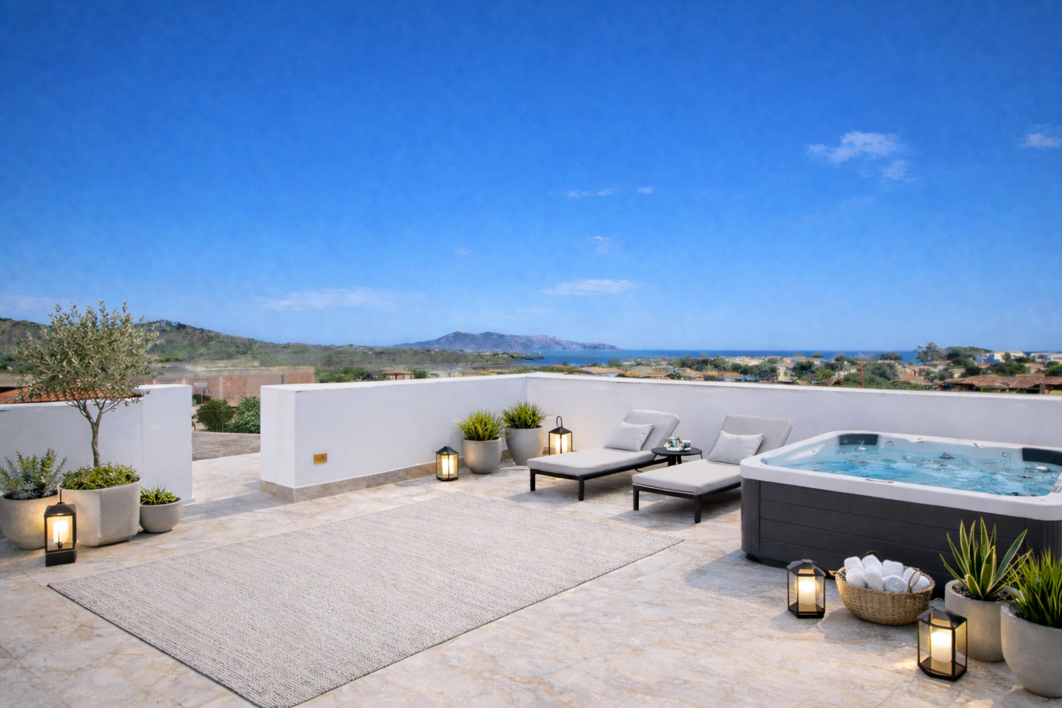 Le abitazioni si distinguono per le finiture di alto livello e per l’utilizzo di materiali di pregio, tra cui il raffinato marmo di Orosei, scelto per i pavimenti interni e per i terrazzi.