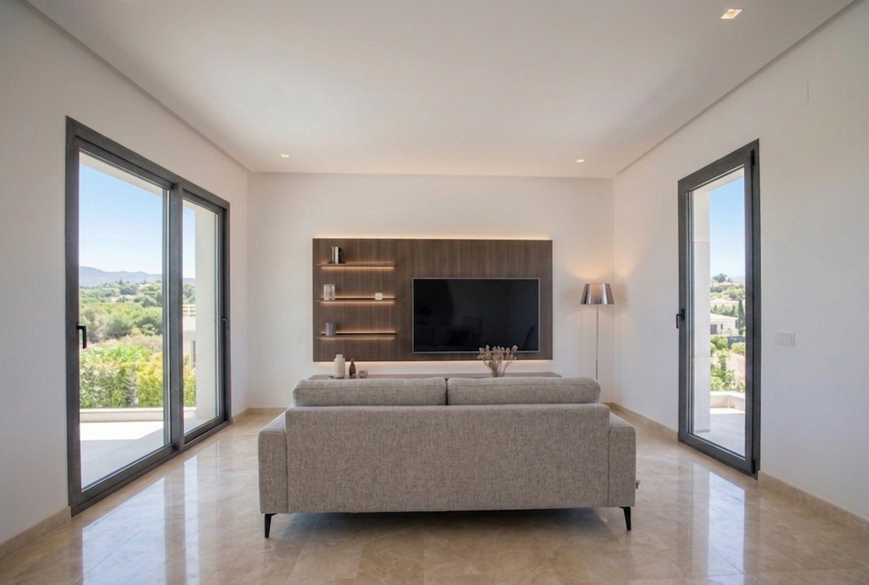 Le dotazioni tecniche garantiscono comfort abitativo ed efficienza energetica, grazie a infissi in PVC con vetrocamera basso emissivo conformi alle normative vigenti, sistemi oscuranti con frangisole motorizzati in alluminio e un impianto autonomo di climatizzazione caldo/freddo con pompe di calore, oltre alla predisposizione per l’impianto fotovoltaico.