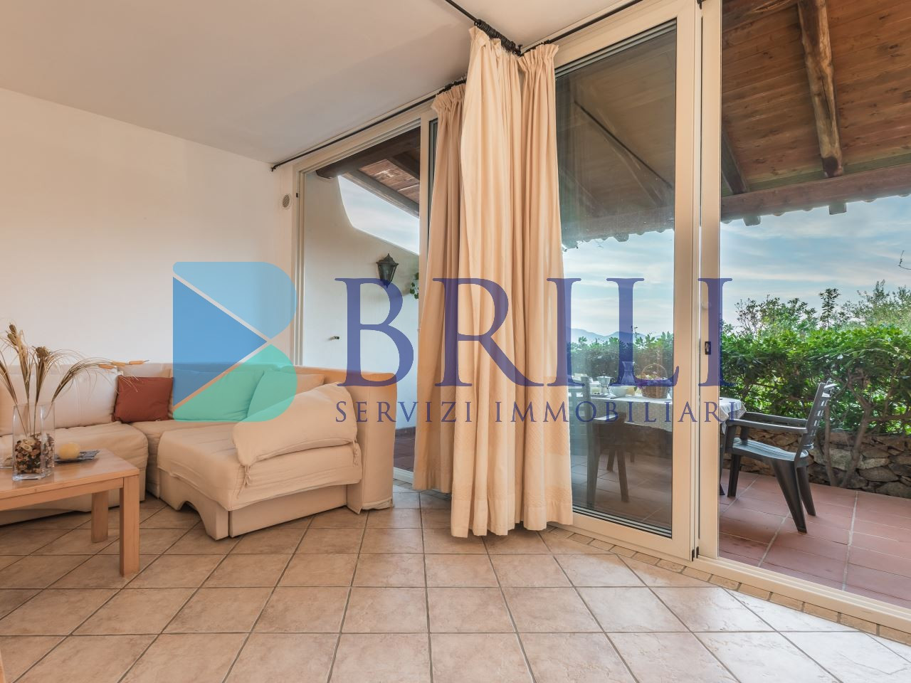 Quest'ultimo può essere separato tramite una parete scorrevole, creando una comoda zona notte aggiuntiva. Il soggiorno si apre su un’ampia veranda coperta, completamente attrezzata, ideale per ammirare il mare mentre si pranza o cena in compagnia di amici e familiari, o semplicemente per rilassarsi all’aperto. Completano la proprietà un posto auto e un grazioso giardino, che offre un ulteriore spazio esterno per godere della lussureggiante natura del Resort.