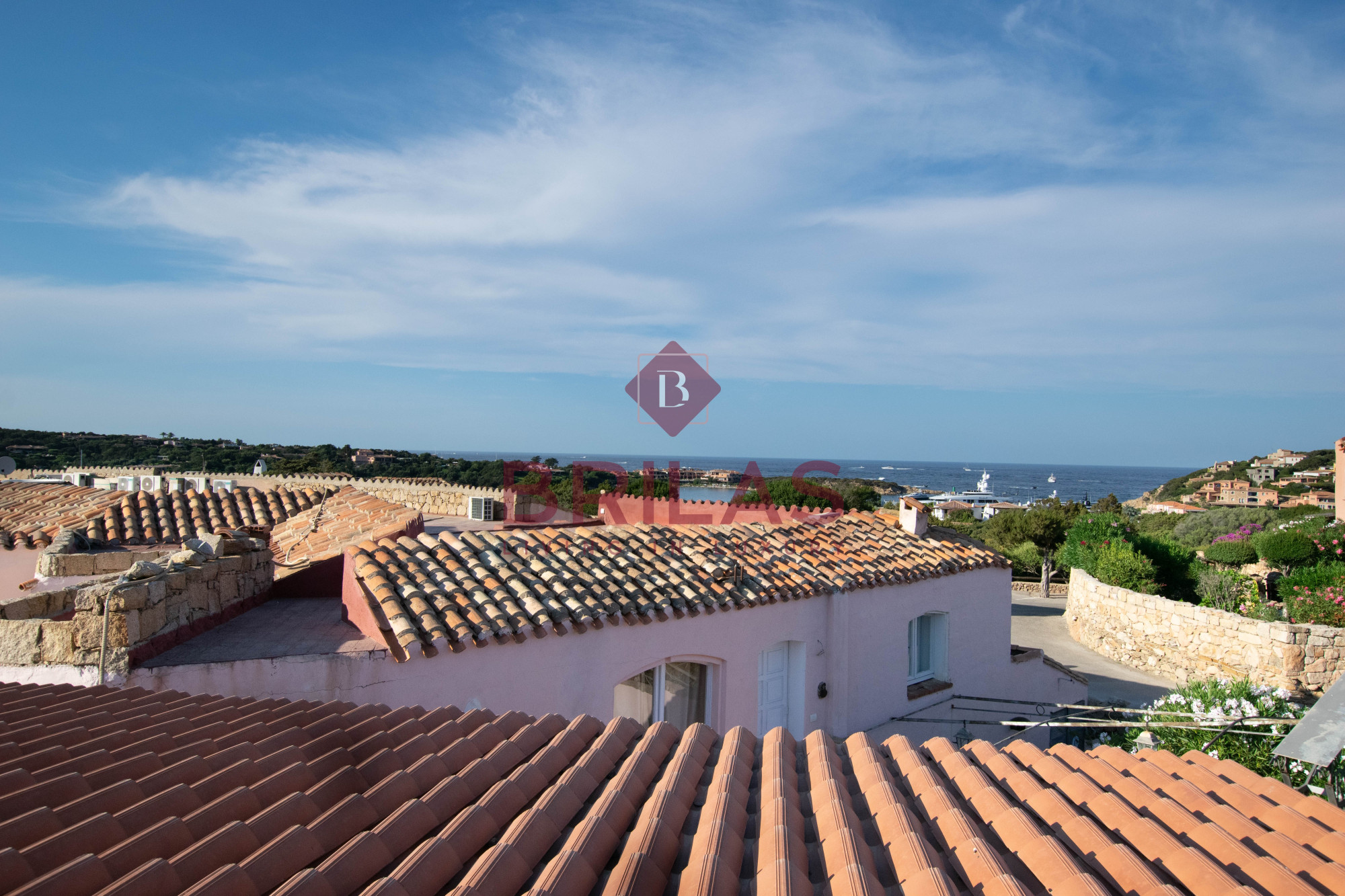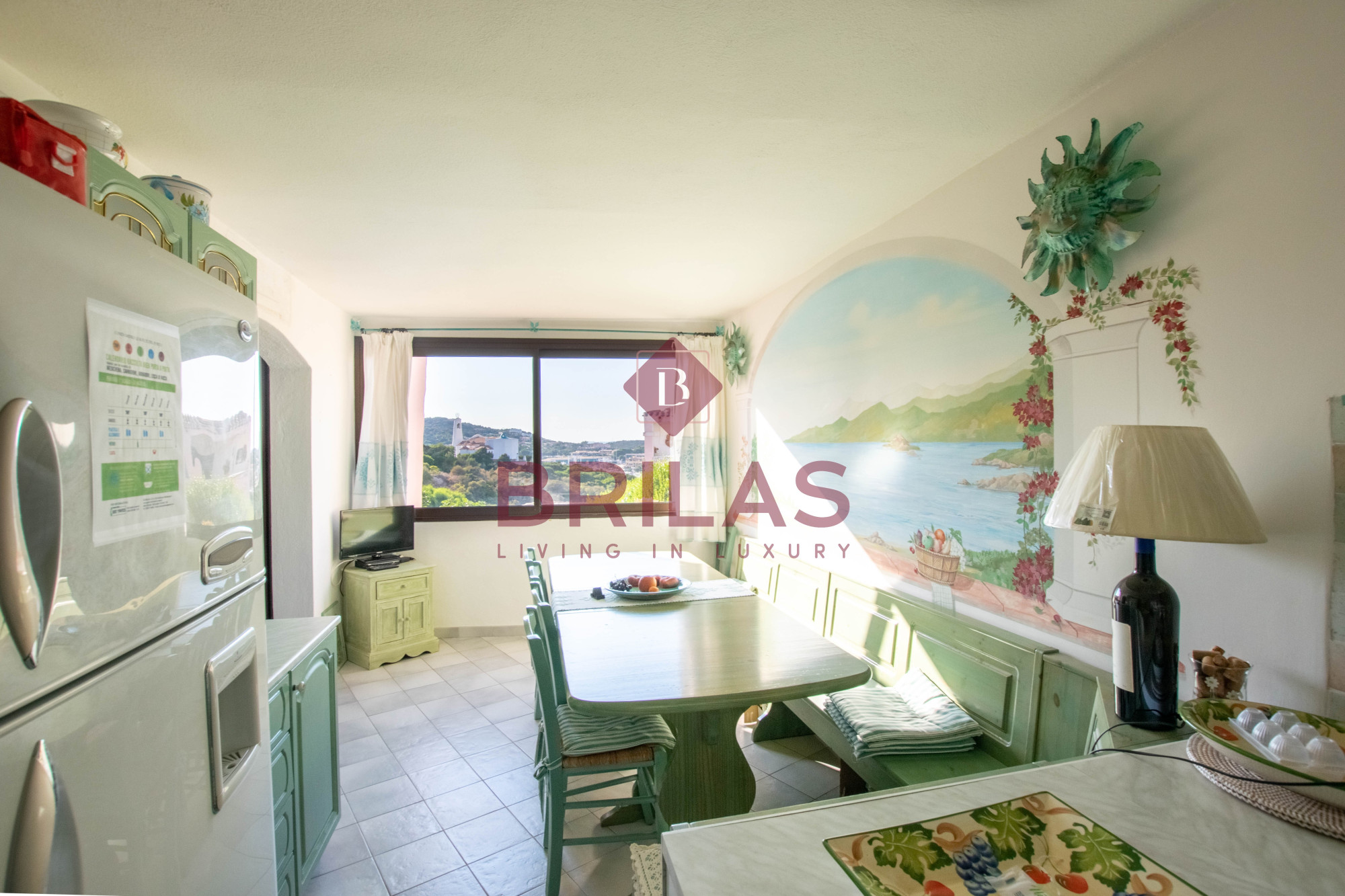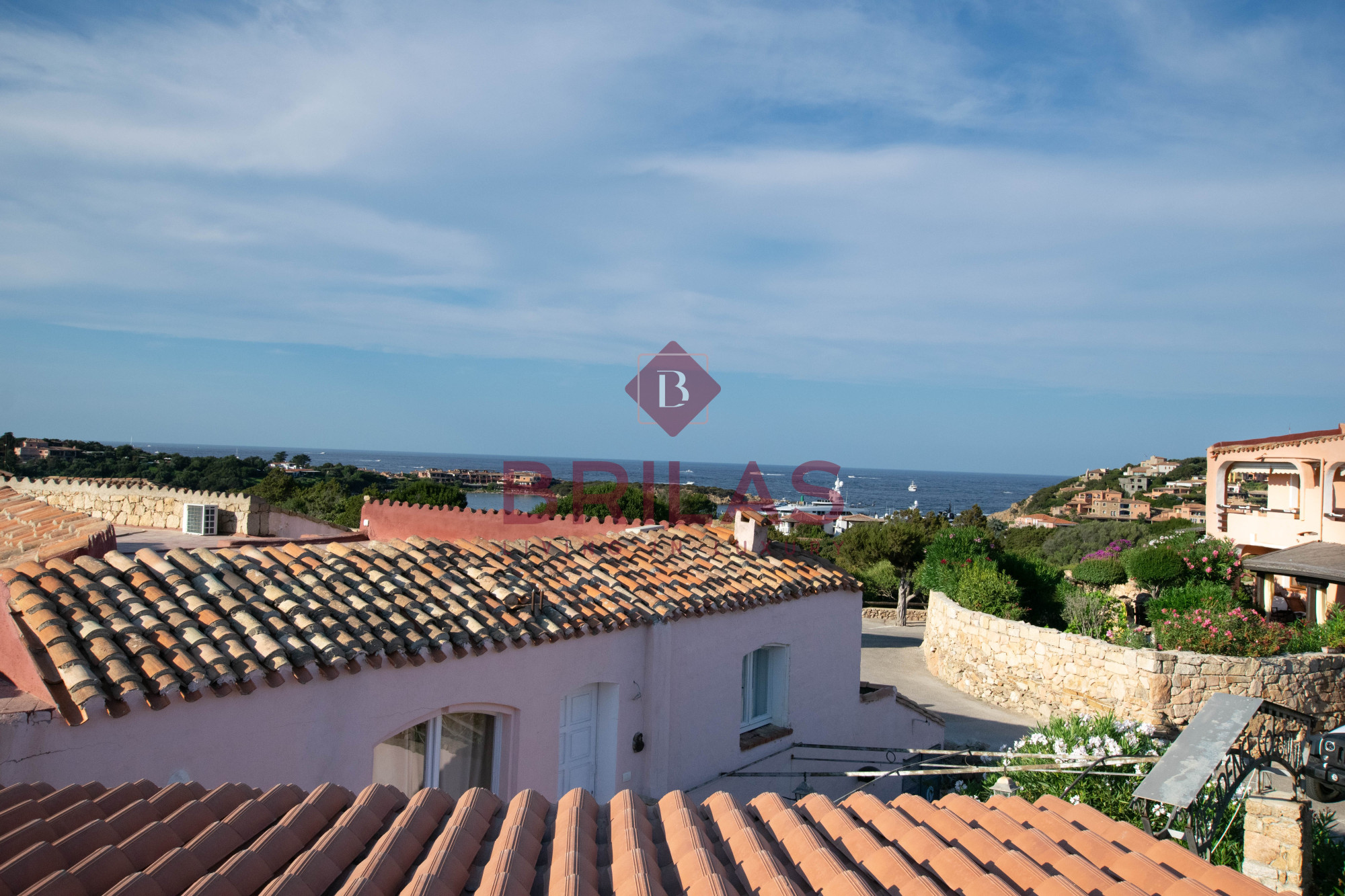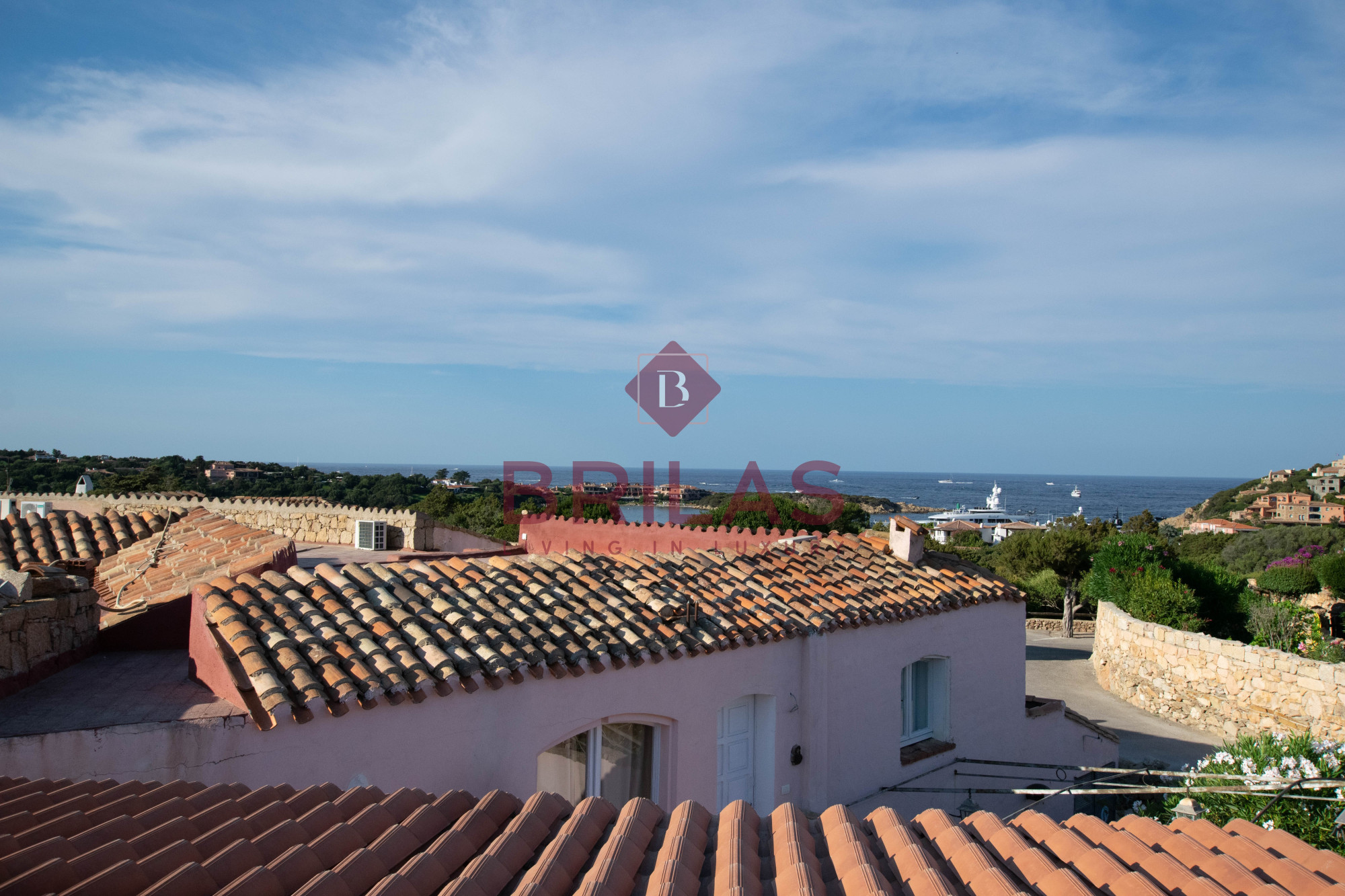 Gli spazi interni sono ampi e ben distribuiti. La zona living, composta da un ampio e luminoso soggiorno e da una cucina separata ed abitabile, gode di una bella vista sulla Marina di Porto Cervo e sulla suggestiva chiesetta di Stella Maris.